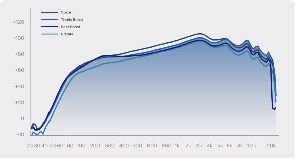 DirectPitch™ 1.0 combines two innovative solutions: directional sound transmission and phase cancellation. Our optimised acoustic beam concentrates the sound source straight into the ears, while reverse sound waves actively counter persistent leaks.